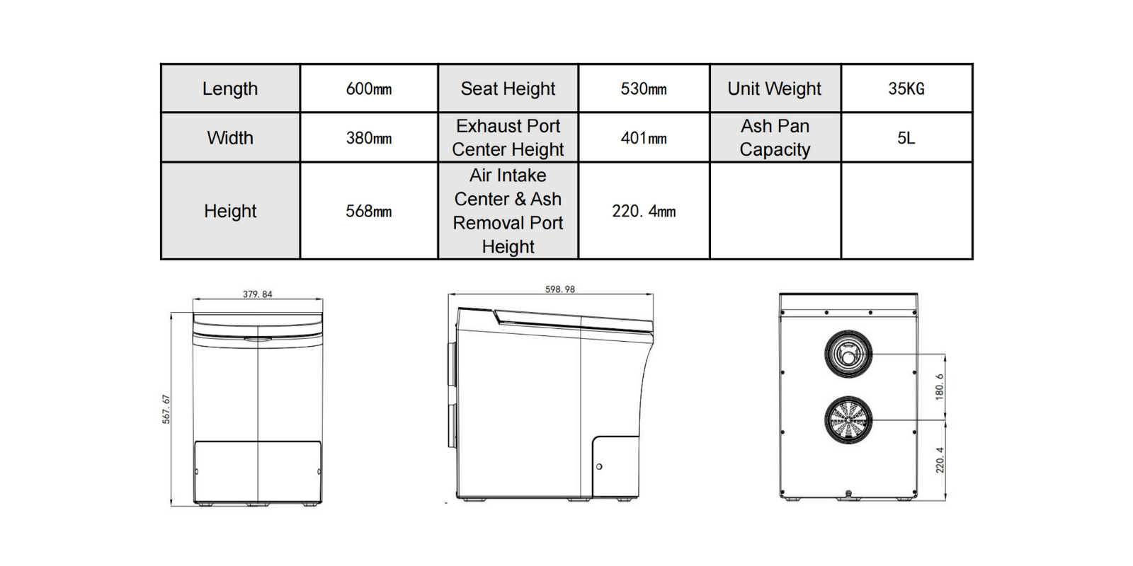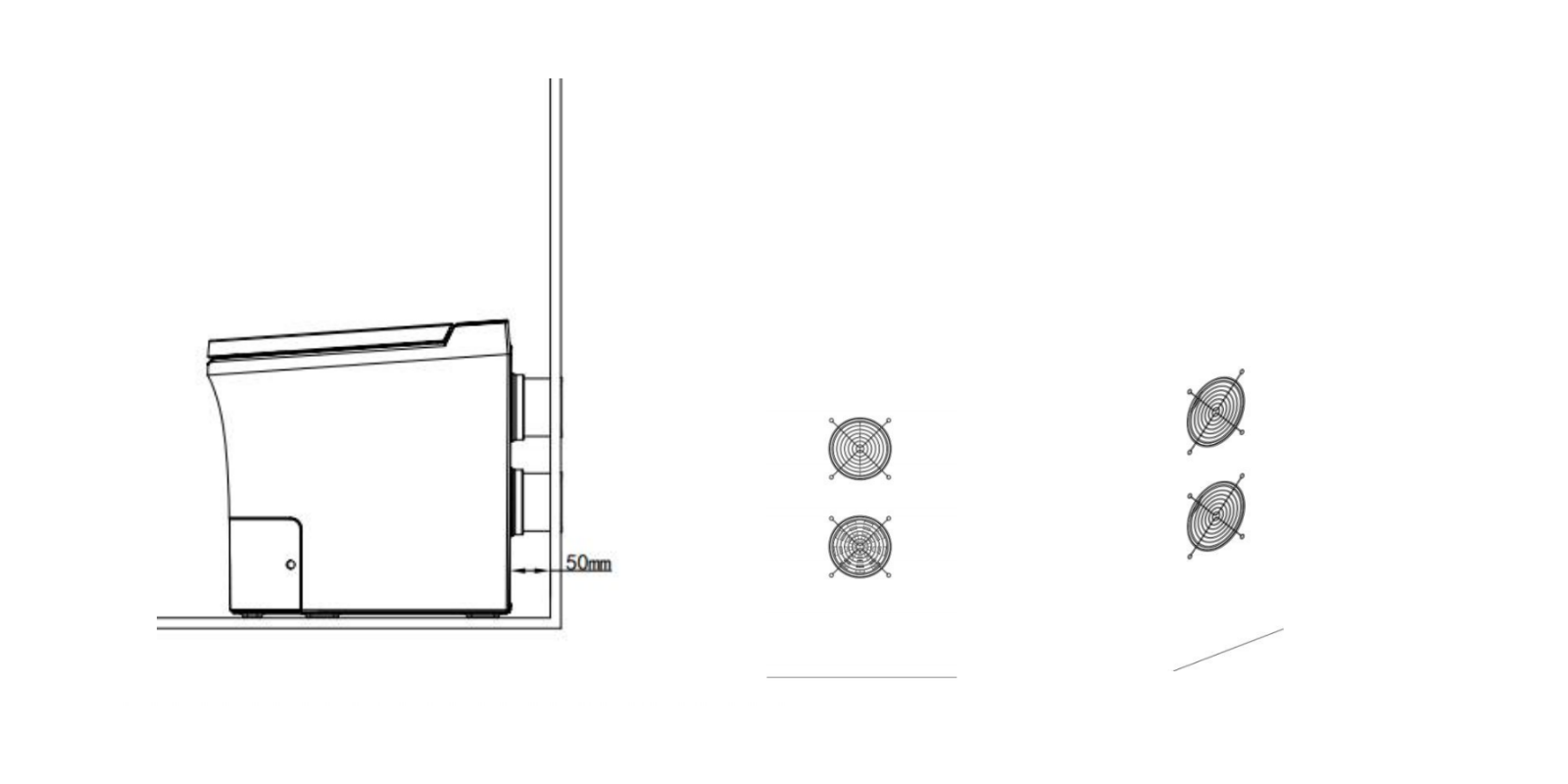 - As shown in the diagram, the gap between the back of the incineration toilet and the wall is recommended to be no less than 50MM.