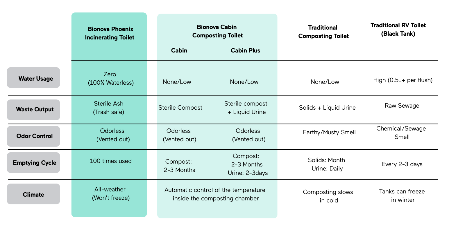 Stop planning your journey around dump stations. Discover the Bionova Phoenix Series Incinerating Toilet—where clean technology meets the open road.
