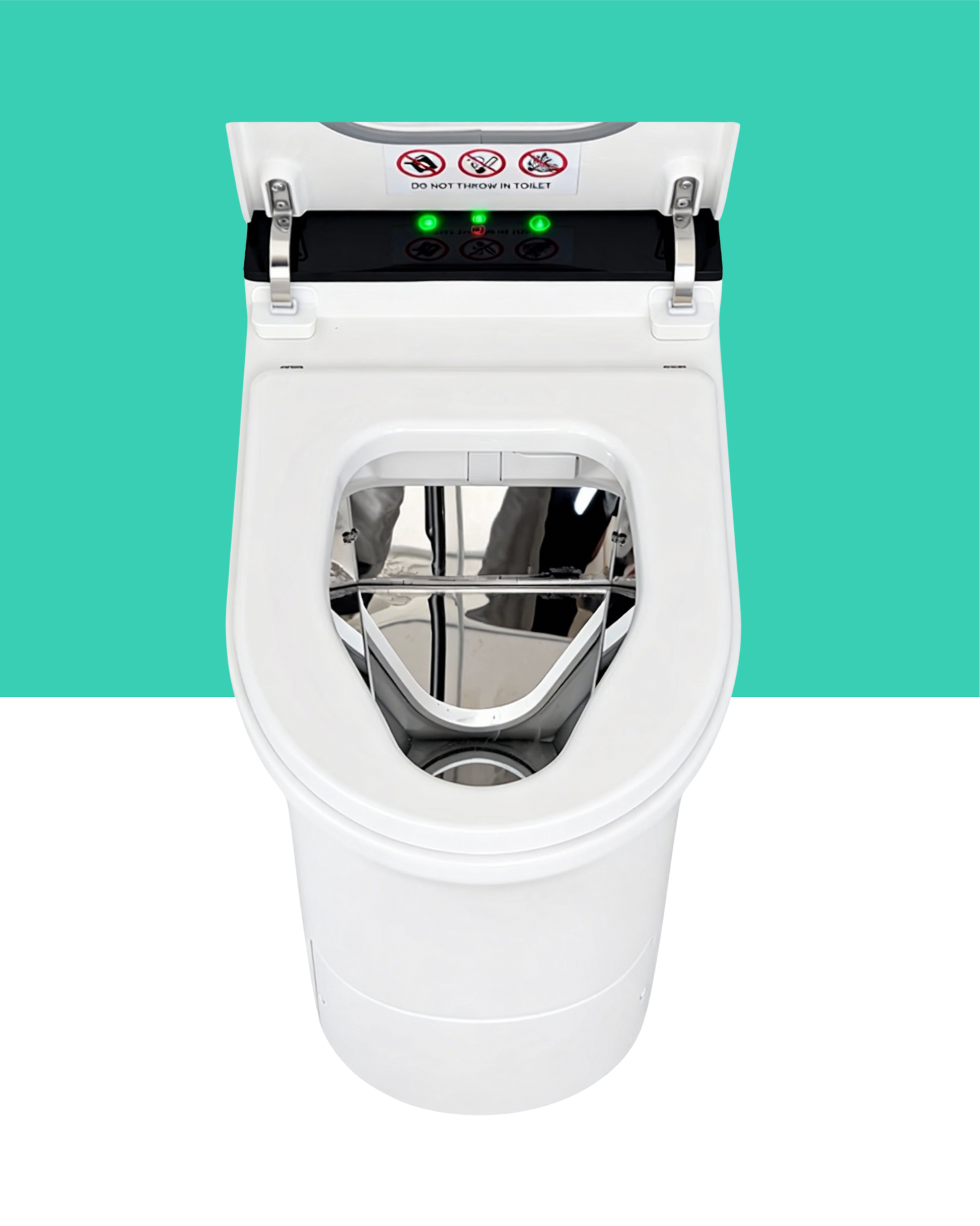 When the user initiates the incineration cycle, waste is safely processed at high temperatures, eliminating pathogens, odors, and moisture without the need for chemicals, water, or connection to sewage infrastructure.